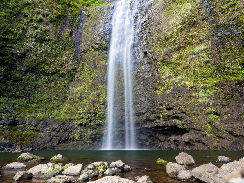 A 300-foot cascade tucked deep in the Nā Pali coast. Getting there means a hike through bamboo forests, mud, river crossings, and jungle — the kind of trek where you feel every sense switch on. At the end, the falls thunder into a jade pool, mist cooling your skin. Staying close by at River Estate makes it easy to start early and return home tired, happy, and covered in stories.